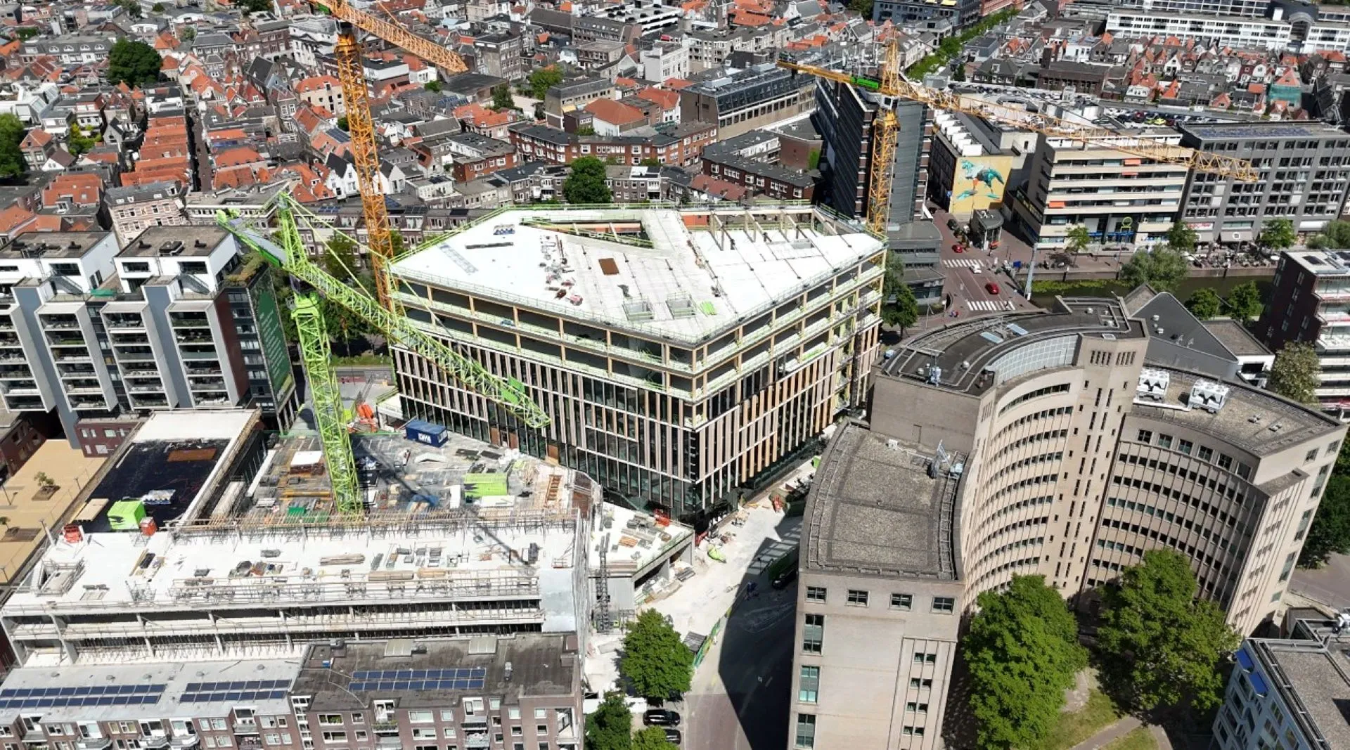 De bouw vindt plaats in een druk gebied, vlak bij het station. Dat vraagt om een strakke planning en een efficiënte uitvoering. Door onderdelen waar mogelijk te prefabriceren en slim te monteren, blijft het proces beheersbaar en voorspelbaar.